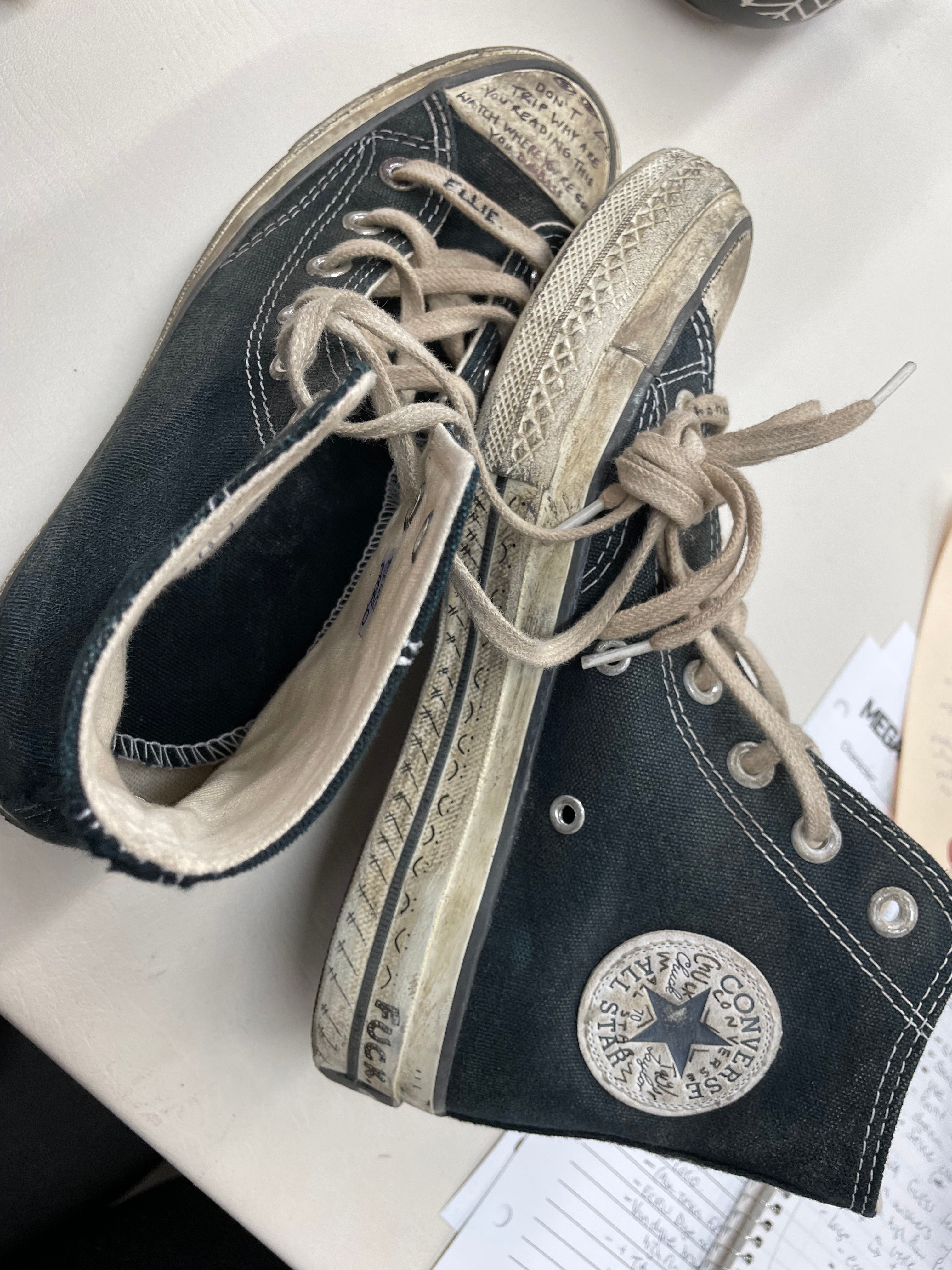 One change in Joel's costume design from "The Last of Us" Season 1 to Season 2 is that he tucks his shirts in now "like a dad would." There are obviously MASSIVE spoilers ahead for The Last of Us Season 2! She continued, saying, "They have such a great understanding of these characters, so it's always important to me to hear what they have to say and give them a voice in the fitting room. There's always wonderful conversations to be had with the cast." The tucked-in shirts are also meant to mirror Tommy, who is also a dad and leader in Jackson. Ann explained, "Tommy is the pillar of the community now, and sort of in charge with Maria, and Tommy's always got his shirts tucked in." Ann explained, "The jacket was really the only piece from Season 1 that made it. I felt like that was an iconic character piece to Joel, and it's something that the audience was going to remember." "When we saw in the script that it was going to be a jacket, we knew it had to be THAT jacket," Ann added. "Seeing that progression in one episode from Ellie as a 14-year-old turning 15-year-old teenager to a 19-year-old young woman," she continued. "So the pants are baggier, the T-shirts are longer and a little bit baggier. Then, as Ellie starts to grow up and become an adult, the jeans are a little slimmer in shape, the T-shirts are shorter in the body, even the hem on the T-shirt is a little bit shorter, and the silhouette of the shirts that she wears is also a little bit slimmer. So it's little things like that that help to show that age progression." She added, "I felt it was really important to show, like, the similarity between Joel and Ellie in their clothes and the things that they choose." Ann added, "I wanted there to be a sharp contrast between the two." Ann added, "When we knew it was going to be the Converse, that's when I went to Craig Mazin [the show's co-creator], and I said, 'I would really love to have some doodles on the shoes, and I would love to give a pair to Bella, see what they would do with them.' And he was also on board with that idea." She continued, saying, "I felt like it wasn't really, in a weird way, I know this is going to sound strange, but it kind of didn't feel like it was my business. It felt like as long as it was true to who Ellie was for Bella, then I was fine with it. It became something very personalized that Bella got to do with their costume." Ann also joked, "I mean, listen, as a costume designer, when I see that in the script that Ellie is wearing Converse in the snow, I'm like, this is just me as a costume designer, I'm like, 'Really?!'" She continued, saying, "That scene is so gorgeous, and it's right out of the game. I really felt it was important to try to stay as true to not only the colors that the characters were wearing in the game, but also the silhouette. This is an iconic look for Ellie, and we want it to stay as true to that iconic look as possible." Speaking about working with the props department on creating the iconic bracelet, Ann said, "I knew Nevin [Swain, prop master for Season 2] was a genius when it came to creating these props. So he had somebody who built the bracelet for us. I loved this bracelet. When I was starting prep on the show early, early on, I remember having a conversation with my friend's 16-year-old daughter, and she said, 'You have to promise me, Aunt Ann, that Dina's bracelet is going to make it into the show. Just please promise me.' And I was like, 'Okay, I promise it will.'" She continued, saying, "So it was really important to me to make sure I got that right for Noah because she was so passionate about it. Of course, it's a big part of the story as well, so there was no way it wasn't going to make it into the game, but the fact that Noah brought that to my attention made it even more special to me." She added, "My team, my breakdown team, who are all incredible artists, hand-screened the stripes onto a T-shirt." She said there were discussions about the fact that Aviator Nation didn't exist prior to the outbreak in The Last of Us. She said, "We discussed the fact that the Aviator Nation did not exist in our timeline. But as Craig and Neil have always said, it's all about serving the story, and what serves the story best, just like the Pearl Jam song 'Future Days.' That serves the story, doesn't matter if it was in our timeline or not. We had similar discussions about this jacket. It just felt like Dina." She continued, saying, "We wanted to try to find that perfect green that would look great in the forest, that would separate her enough so that you can see her. But also, so she kind of blends in a little bit, because that makes sense for who Ellie is." Explaining how the costume department made the jackets, Ann said, "We found the fabric. We stripped the fabric, overdyed the fabric, splayed into the fabric, and then the fabric goes to the workroom. They build the shell. Then, when the shell is done, it goes back to breakdown, where they wash it down to get those really great faded edges." She continued, saying, "Then it goes back to the workroom, where it's waterproofed, and then all the other things are added, like the fake fur that we used on the hood. Then once it's built completely, it goes back into breakdown for its final aged look, where they add dirt and grime and anything else that might need to go on there to make it look 20 years old." Ann recalled, "In the game, everybody's wearing lightweight jackets. I remember having this conversation with Ashley Swidowski, who's one of the game designers at Naughty Dog, and we talked about it, and we were like, 'This is great for the game, but not great in real life. So we're going to have to make these changes.' So everybody got parkas." Ann elaborated, saying, "We chose to go with a T-shirt here, just for practical reasons on set and for everything that was happening. Those were also larger conversations that we all had about, okay, this is what it was in the game, but we might