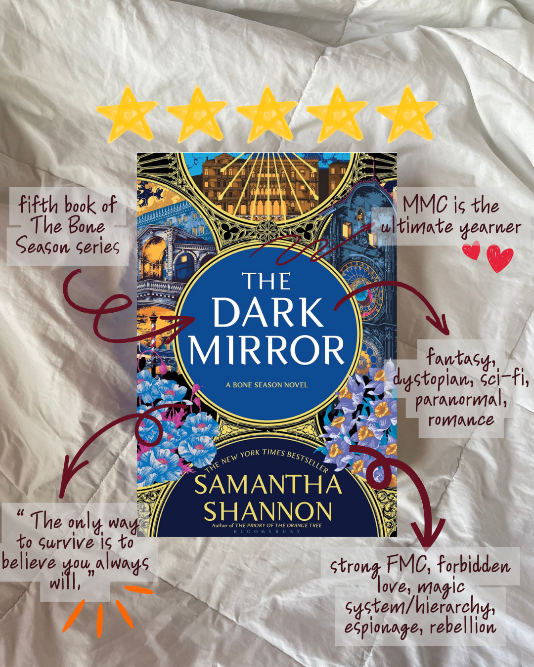 Starting 2026 off with dragons, magic, time travel, betrayal, and a giant Pacific octopus... Not going to lie, this was my reading goal last year, but I didn't make it. Like, I was waaaaay far off (22 books) because, well, I was busy, which is why I'm trying again this year — and am even more determined to reach it. The Dark Mirror is the fifth book in The Bone Season series, so let me rewind: The year is 2059, and Scion reigns with the intent of criminalizing voyants, aka people with "unnatural" abilities. Thus, voyants are forced to hide. In Scion London, Paige Mahoney is a rare dreamwalker and a high-ranking member of an underground, voyant-run criminal organization. But when Paige is captured by Scion's secret police, she is transported to Oxford, a hidden city ruled by the Rephaim, an ancient non-human race. Paige is essentially forced into servitude but finds herself under the tutelage of a mysterious Rephaite called Warden, who teaches her to fight and strengthen her abilities. But as Paige learns more about, well, everything, she realizes that it's not enough to just survive; she has to burn the entire system down. Since this is the second book in the series, let me set the stage from the first book, The Sword Catcher. Kel, aka cutie patootie #1, was taken from the orphanage to become Prince Conor's Sword Catcher, a body double meant to take a blade for him (and more) if needed. Though becoming the Sword Catcher gave Kel luxury and proximity to power, his main purpose is to live, bleed, and die for Conor, the heir to the throne. Cutie patootie #2 is Lin, a gifted Ashkar physician who lives within the walls of The Sault with other Ashkar, segregated due to their affinity for magic. But when a failed assassination attempt brings Lin and Kel together, she finds herself caught in court politics, conspiracies, and an infuriating attraction to a certain prince. Desperate for answers, Lin and Kel turn to the city's criminal mastermind, which pulls them straight into the city’s darkest secrets and sets the stage for The Ragpicker King. June Farrow comes from a line of women known to be cursed; no matter what, they always seem to go mad. After a year of hearing and seeing things that aren't there, June knows that the madness has begun coming for her. But after her grandmother passes away, she finds a string of cryptic clues surrounding her mother's disappearance and her family history, which leads her to cross through a red door that wasn't a hallucination after all. After she crosses the door's threshold, she finds herself still in her small town of Jasper, North Carolina — but in a time way before the one she came from. There, June learns more about the curse that has haunted generations of Farrow women and tries to uncover the truth behind her mother's mysterious actions and disappearance. Basically, to get y'all up to speed, Alizeh is the long-lost Jinn queen who, for years, has been forced to hide in plain sight as a servant among the Clay people after her parents were killed. Not only is she prophesied to be the end of King Zaal of Ardunia, but she's haunted by the devil, Iblees, who often shows up whenever misfortune enters her life. But when Alizeh and Prince Kamran cross paths, everything changes, and Alizeh is forced to come out of hiding, hoping to lead the Jinn people back to freedom. However, things get quite complicated once Cyrus, the young king of Tulan shows up, and Alizeh must confront the truth about her purpose, her identity, and Iblees, and decide what's best for her people. Seventy-year-old Tova is wading through grief after the recent death of her husband and the mysterious disappearance of their son, Erik, 30 years prior. She passes the time as a night cleaner at the local Sowell Bay Aquarium in Puget Sound, Washington. But when she discovers that Marcellus, the giant Pacific octopus, has been sneaking out of his tank to scavenge for food other than his usual fare, an unlikely friendship forms between them. Meanwhile, Cam is an irresponsible, can't-keep-a-job 30-year-old dealing with a breakup and mommy and daddy issues. His mom abandoned him when he was younger, and he never knew his dad. But when an old high school photo of his mom prompts Cam to go on a road trip in search of his father, he winds up in Puget Sound and learns things about himself and his past that he never expected. Here are the five books I read in January: • The Dark Mirror by Samantha Shannon (⭐️⭐️⭐️⭐️⭐️) • The Ragpicker King by Cassandra Clare (⭐️⭐️⭐️⭐️) • The Unmaking of June Farrow by Adrienne Young (⭐️⭐️⭐️⭐️) • Every Spiral of Fate by Tahereh Mafi (⭐️⭐️) • Remarkably Bright Creatures by Shelby Van Pelt (⭐️⭐️⭐️⭐️⭐️) What genre of book should I read in February?