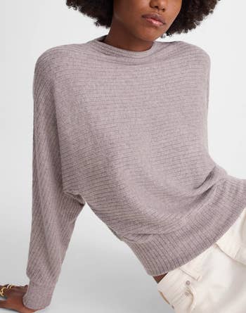 Promising review: "This sweater is elegant, yet casual. It is soft and cozy, the dolman-style sleeve is so stylish, and you can dress it up or down. It is very warm yet lightweight. The pics don't do it justice! The horizontal ribbing is eye-catching and adds to the unique style. About to buy another one... This is a keeper!" —Krissy T
