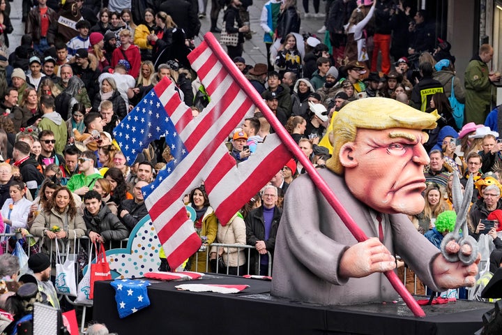 Donald Trump was once again the target of satirical mockery at the annual Rose Monday carnival parade in Düsseldorf, Germany. One effigy of the president, with “ICE” representing Immigration and Customs Enforcement written on his sleeve, depicted him punching Jesus Christ, with “Love & humanity” on his shirt, in the face: Another float showed Trump fighting with Russian President Vladimir Putin to devour Europe: Putin was also depicted knifing satire: An image of the late convicted sex offender Jeffrey Epstein, a onetime close associate of Trump, was turned into a vampire with messages on his wings reading “everyone protects the perpetrators” and “everyone ignores the victims.” See how Trump has been depicted on floats at the same carnival since 2016. By entering your email and clicking Sign Up, you're agreeing to let us send you customized marketing messages about us and our advertising partners. You are also agreeing to our Terms of Service and Privacy Policy.