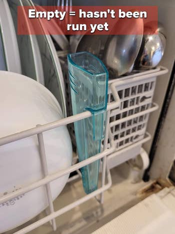 Promising review: "I have been looking for a dishwasher done indicator to use on a stainless-steel front (no magnets). This is the BOMB. NO moving parts. No flimsy clips. No tape, glue, or magnets. Simply slip it over the edge of the bottom basket, and you are good. The sturdy clip does not flex, so there is no wear and tear. The action of the washer fills up the tube. DONE. The first time you open the door after washing, tip out the tube, and you are ready again. Hooray...something that works." —MRMACHINE of Raleigh