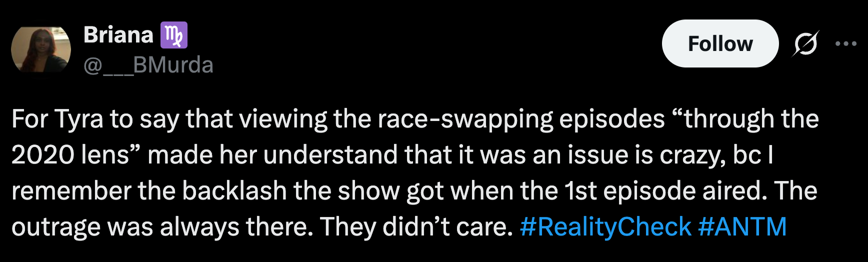 Blackface was bad even in the 2000s, Tyra.