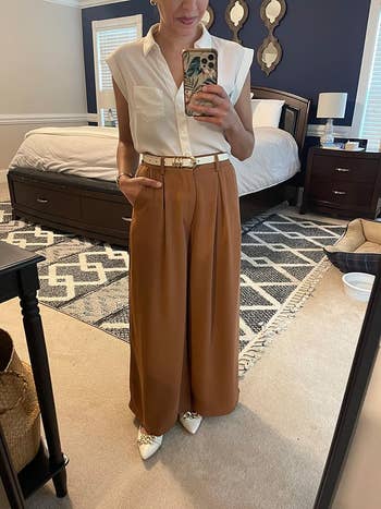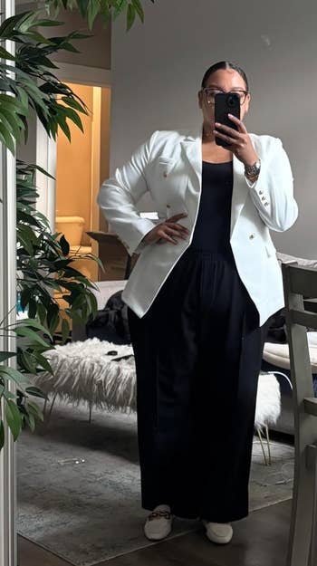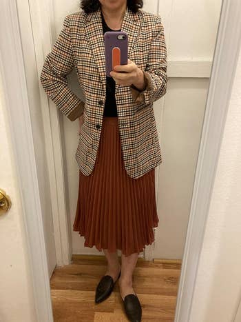 We hope you love our recommendations! While every product is independently chosen by our editors, BuzzFeed and our publishing partners may collect a share of sales or other compensation from the links on this page. You can read more about how our affiliate partnerships work in our Editorial Standards & Ethics Guide. Who knows... your next job might just be CEO of Amazing Outfits. Unless otherwise stated, all sizes are listed in women's. Promising review: "I ordered the black in a large. This blazer is PERFECT and doesn’t look cheap at all. You get what you pay for, trust me. High quality all around. From the silhouette to the sequins, it’s a must for anyone wanting to elevate a basic look. I got a ton of compliments the night I wore it out to a concert." —Annette Get it from Amazon for $74.90+ (available in sizes XXS–5X and 21 colors). Promising review: "Wore this for an annual charity boxing event and it was a crowd favorite. A bit dressy, a bit edgy. Was surprised how thick it was and was thankful for the heavy material during the cold evening. Longer than I thought as well!... Overall worth it and a total shock in the best way possible!" —Trina Hams-Ciapanno Get it from Amazon for $75 (available in sizes XS–XXL and in 17 colors). Promising reviews: "These are my favorite pants! They are comfy, cute, professional, fun, and they pair well with SO many things! I can basically wear them for any occasion! I've bought them in three colors, and I easily wear them all once (if not twice) a week!" —Liz "I bought these because I saw a review on TikTok and thought they looked nice. They’re even better than I imagined! Professional, yet comfortable. If you’re debating, get them!!" —Molly Shutt Get them from Amazon for $33.99+ (available in sizes XS–2X, long and short sizes, and 29 colors and patterns). Promising review: "I LOVE THESE SHOES!!! A teacher’s dream. They’re super cute and even have comfortable insoles. The color is rich and vibrant. Excellent quality. Even my sardonic teenage students constantly compliment them. Will be buying more colors!!!" —Rb Get them from Amazon for $18.46+ (available in sizes 5–13 and seven styles). Promising review: "I bought one color and came back to order more colors! I was afraid that it would be thin and flimsy, but this is a super strong and quality fabric! Definitely my new favorite and looks SO good!! Seriously, got so many compliments. You will not regret it!" —DJF Get it from Amazon for $16.99+ (available in sizes XS–XXL and in 37 colors). Promising review: "I absolutely love these skirts! I get so many compliments when I wear them. I bought one to start, and now, over a year later, it’s as beautiful as when I bought it. So I bought another and already have yet another in my cart. Very comfortable. I love that I can wear them to work, for family pictures, or dress them down for weekend wear. The pleats have held up great, and I never iron them. I machine wash on delicate (usually with the skirt folded in a delicates bag to enhance the pleating) and hang dry. I know I’ve accidentally put it into the dryer many times and it still looks like new. I chose to size up even though I’m right on the border of sizes, and that works for me because I have wider hips and thighs. I didn’t want the waistband to be at all restrictive even though it’s nicely stretchy and the fabric has give." —R. Thompson Get it from Amazon for $22.99+ (available in sizes XS–XXL and five colors; this plus-size option is pretty much identical). Promising review: "This is exactly what it says it is! It is double-breasted, with a silk lining, which makes it easy to wear because you won't get hot or cold. It falls just past the hips, providing full coverage. This will not wrinkle. It is on the heavier side. The buttons dress it up, but you can totally wear this casual, business, or dressy. Fabric is a great material. I love this suit jacket. The quality of this jacket is fantastic for the budget." —LS Get it from Amazon for $49.99+ (available in sizes S–XXL and in 11 colors). Promising review: "I love this top so much! It’s sexy and simple but so comfortable!" —Ashley C Get it from Abercrombie for $40 (available in sizes XXS–XXL and four colors). Promising review: "Love this sweater so much I bought a second in Heather Soft Taupe. I sized down after reading it was oversize, and I am happy with that choice. I would say it fits true to size, so size down if you want the arms to be less bulky. This sweater has become my go-to now that the colder temperatures have returned. It is cozy, warm, and wearing well." —Kelli B. Get it from Everlane for $168 (available in sizes XXS–XXL and eight colors). Promising review: "This shirt is soooo cute. Looks and feels amazing. I think the price is super reasonable for how expensive it feels." —King Pamme Get it from Amazon for $14.97+ (available in sizes S–XL and in 16 colors). Promising review: "Looks wayyyyy more expensive than it is. The details are amazing with the buttons and the finishing. Also the material is excellent. Definitely get it." —hanana Get it from Amazon for $25.99+ (available in women's sizes S–XL and in 10 colors). Promising review: "The shoes come very nicely packaged! These are my favorite shoes. Once you break them in, they are like BUTTER. I have bought two pairs myself; I own them in black and in white. My mom has them in black and wears them to work every day, she wanted to have a backup pair bc she loves them SO much. My brother wants to get a pair too LOL. I could not recommend these shoes more, I get so many compliments… people even think they are Gucci!" —Caroline King Get it from Amazon for $49.89+ (available in sizes 5–12 and in 11 colors). Promising review: "I’ve had this bag for months now and use it every day. I wanted a grown-up bag for my office job that could carry my iPad without looking like a bulky book bag. The material is thick with a 