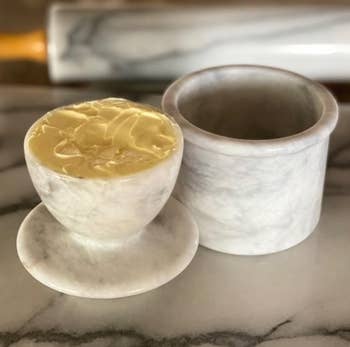 Promising review: "There are people who have this butter bowl, and then there are savages. It’s like Zeus made a statue of himself and then carved the butter bowl out of that. I feel like society moved one step closer to true enlightenment with this invention. It really is the cat's meow, and keeps our cat from licking the butter!" —Mike