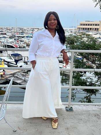 BuzzFeed Shopping editor and seasoned traveler Chelsea Stuart says: "I already had these pants in driftwood, black, and martini olive — and I just picked up two more colors for an upcoming trip — because I can't get enough. They're extremely comfy, wash beautifully, and deliver a low-fuss look that's still super pulled together. I agree with the majority of reviewers who say they run large, so size down if you're between sizes!"