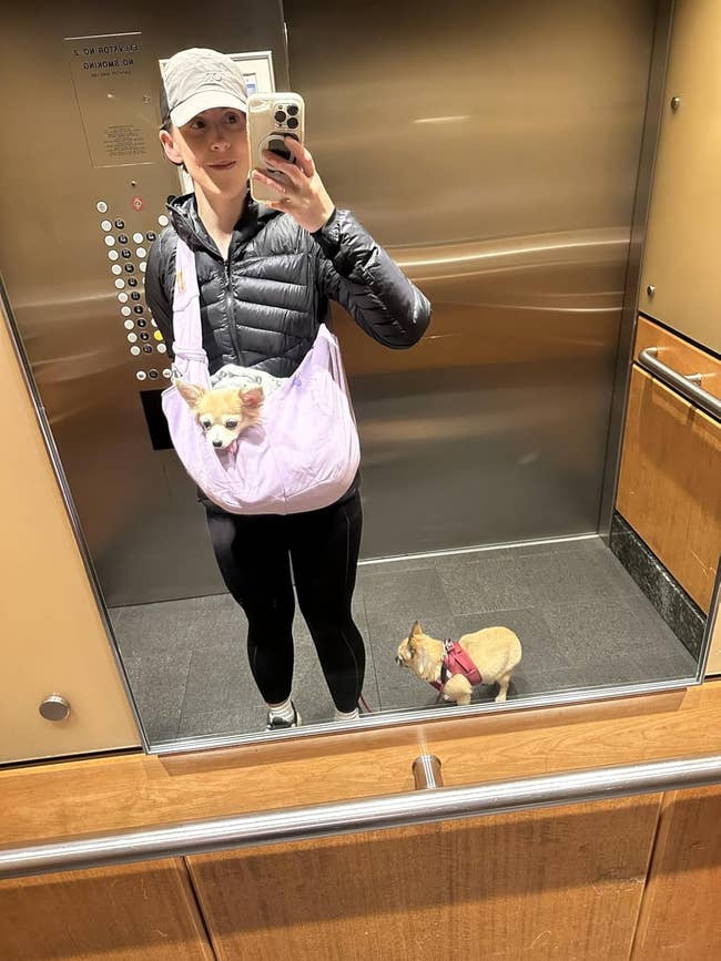 Promising review: "My pom is a petite little dog with a big personality. She thrives on adventures, but we’ve found that she tires out quickly when on a leash. That’s why her carrier is perfect. It gives her a cozy spot to retreat from the extra attention she often attracts while out and about. Yet, she can still pop her head out to say hi whenever she feels comfortable!" —Happy Mom