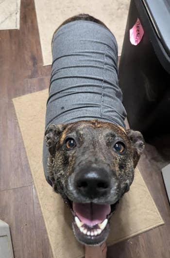 Promising review: "It really does calm the dogs down. So soft and cute. Great quality. We have a corgi, so we had to roll the sleeves up a little since he has short legs :)" —Alexdltlopez
