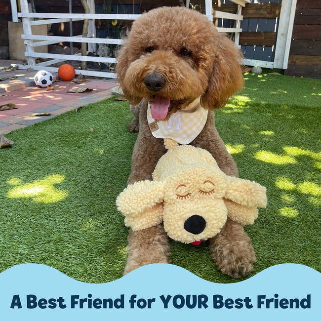 Promising review: "We have two rescue dogs — one is afraid of loud noises and storms and is also very clingy. He constantly wants to be touched, and we can’t always be there to cuddle him, but this has helped him with all of it. We’re still getting him used to it, but I’ve also purchased one for my parents' dog who is terrified of thunder, and it has worked great for years!!" —Gina Andries