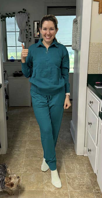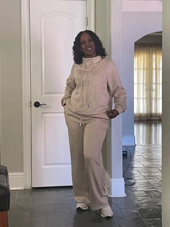 Promising review: "This outfit exceeded my expectations. It is super soft and more of a sweater material than a traditional sweatsuit material. Will be ordering this in additional colors. This is the perfect casual outfit to wear when visiting friends for a home get-together or for just lounging around the house when you want to be warm and comfortable." —Mrs LG