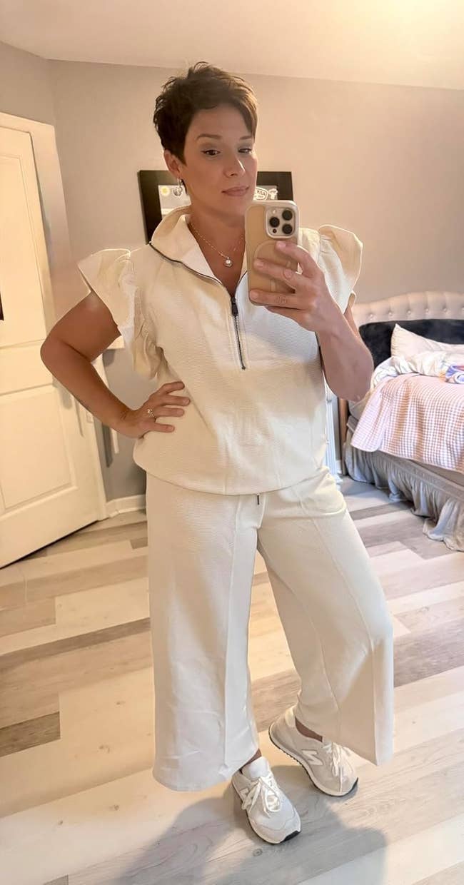 Promising review: "I was pleasantly surprised by the amazing quality and perfect fit of this outfit! The material feels high-end, and the style is super trendy. It’s the perfect sporty-chic set for running weekend errands, grabbing coffee, or just lounging around the house in comfort. I’ve gotten so many compliments already — definitely worth every penny!" —Kim Simpson