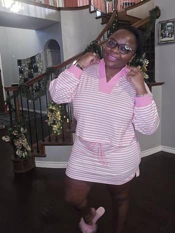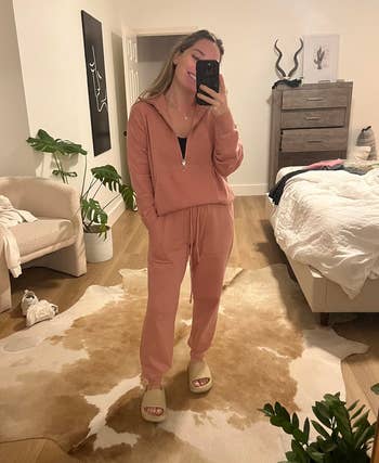 Promising review: "Love, love, and love this matching two-piece set. It runs true to size, is very warm, and is not heavy. This is a set that can be worn around the house, a set to be worn running errands or heading out to a sports game, or just whatever you want. This outfit is just super cute, hands down, great value for the money. I even get asked every time that I wear it about where I purchased it. (Thank you, Amazon.) I will be ordering it in a few other colors." —Cee Banks
