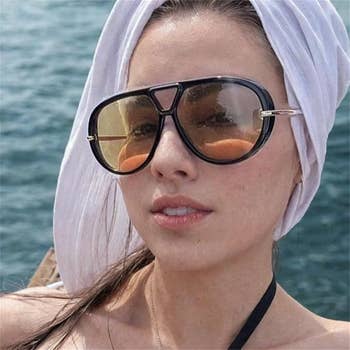 Promising review: "TikTok made me buy these!! One video did it for me and I RAN to Amazon. And yes, I bought ALLL the colors. They fit like a dream and are good quality. People that know their sunglasses thought these were the REAL THING! For the price, these are made EXTREMELY well and look hecka expensive. Get all the colors so you can wear them for every season." —Santana Davis