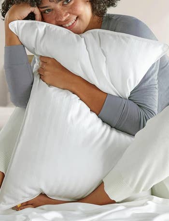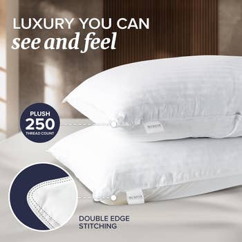 Promising review: "I’ve never been the person that brings their own pillow on vacation, but these will be coming with me everywhere. They are soft and foldable yet have just enough weight so you aren’t throwing them around while you are adjusting. They don’t clump or get lumpy over time. The size is great and fit my queen bed perfectly. They have absolutely no smell out of the box and puffed up perfectly. This is my new perfect pillow!!" —Grace Southwick