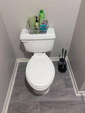 Promising review: "According to the instructions I was supposed to use the whole bottle but being that it was so big and that I had two toilets to clean, I only used half. I was pleasantly surprised. The toilet tank is from the 1960s and I doubt it's been cleaned within the last few decades. In the 'after' photo you can see that there is still some rust left over but large chunks fell off the sides and can be seen on the bottom of the tank." —Nicole