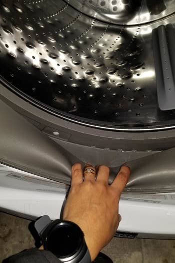 Promising review: "I’d never had any issues with mold or any nastiness accruing inside my washer until I did. I read a bunch of reviews and convinced myself I didn’t need such an item — after all, I could just prop the door open after every wash. The thing is, the way the washer is positioned in the laundry room, I’d hit the washer door every time I went in there. I gave in and made the purchase. Sooooo worth it! Easy to maneuver around, and it’s a sturdy little gadget. Highly recommend!!!" —painterJane