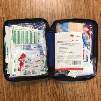 Promising review: "I’ve had this first aid kit for several years under my kitchen sink and have never had to restock, even with generous use. This kit has pretty much everything you might need within reason, for a great price as well. This kit has been a service to those living in my apartment, from basic shaving cuts to a deep laceration for the hip. After a freak accident in which I fell on, broke, and stabbed myself in the love handle area with my glass water bottle, this kit allowed me to stay calm and pressurize the wound with gauze and bandages while arranging a ride to the ER." —Olivia K