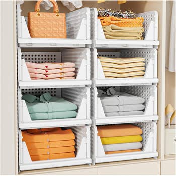 Promising review: "I put these in my closet to make extra shelves for sweaters/sweatshirts. They were easy to assemble and worked great at adding additional space to my closet. I like that my clothes don’t topple over into the pile next to them anymore. They were easy to put together, and if I move they will be easy to take apart, put in a small box and move. I'm very happy with this purchase." —Goldensummerdog