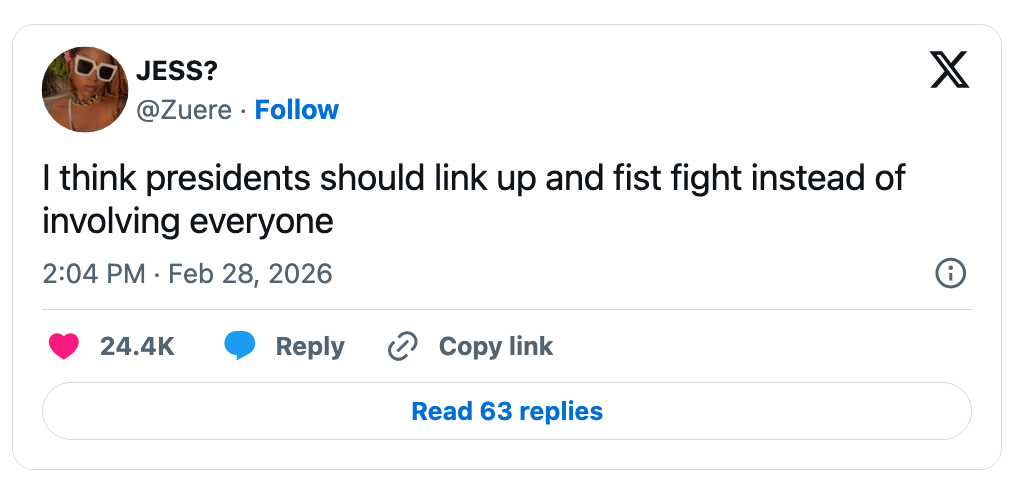 "why do parents bust in your room like they want to catch you cheating on them with another pair of parents?" Hi, Iโm Michaela Bramwell, and I'm a Junior Staff Writer here at BuzzFeed, covering everything trending news, from your latest viral TikTok to the chaos of today's politics. Editor's Note: While we can't endorse what X has become, we can bring you the worthwhile moments that still exist there, curated and free of the surrounding chaos. me sliding out of black history month and into women's history month because my intersection crosses a multi-lane highway... pic.twitter.com/2XFF8W0xun Melanin March tomorrow https://t.co/dg8DrjgdZ8 pic.twitter.com/qRk9sb477K I'm Actually In Physical Pain From Laughing At These 17 Black Twitter Tweets That Completely Made This Week