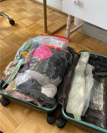 We hope you love our recommendations! While every product is independently chosen by our editors, BuzzFeed and our publishing partners may collect a share of sales or other compensation from the links on this page. You can read more about how our affiliate partnerships work in our Editorial Standards & Ethics Guide. Including a wrinkle-release spray so you won't have to touch the crusty hotel iron. If 2026 is the year you're vowing to travel more yet pack less, we're totally on the same page. Lugging around an overstuffed suitcase during the Europe trip you've planned for months is no fun, but so is realizing you forgot to pack your fave sweater or left that one medication bottle on your nightstand. This list has basically everything you need to make the most of any upcoming travel adventures *without* adding much bulk to your luggage. BuzzFeed Shopping writer Emma Lord says, "HELLO, I AM OBSESSED WITH THESE. Despite all the rave reviews I was definitely skeptical of space-saving bags that didn't require a vacuum, and even as they were actively squishing my clothes into oblivion I still couldn't quite believe it. I had easily two suitcases worth of clothes I wanted to pack for a three-week trip to London, and I managed to neatly pack the entirety of my wardrobe in one roller carry-on bag. Truly all I had to do was put my clothes in the bag, push them to the bottom, and then sit on it to get the air out before sealing it up. I had tons of extra bags and make a habit of taking them with me in case other people joining me on trips need them to be able to pack souvenirs on the way home. I'm never taking a long trip without these again — these are worth every damn penny." Promising review: "I travel monthly for work, usually gone for 4–5 days. Before these, I would have to check a bag. Dress shirts and pants, roll up nicely, and stay wrinkle-free. It's tempting to want to over-stuff these, but if you're packing golf shirts or clothes with 'slippery' fabric, they slide out of the top of the bag as you get close to the end. The clips take a minute to get used to, but after a couple of times zipping up the bags, it's pretty easy." —BigSkinny Get a set of eight from Amazon for $9.28. Plus, the zipper compartment at the bottom can be used for putting all your dirty clothes in so they don't get mixed with clean items. Promising review: "I just love it. I travel a lot. Now, I don’t have to hang anything up but my organizer. I can see what I pack and where everything is. Just love it. I can easily fit seven days' worth of outfits and three pairs of shoes in a carry-on suitcase. Just great." —Amazon Customer Get it from Amazon for $27.99+ (available in two sizes and seven colors). Each pack comes with three packets. And, because they *are* liquid, they'll easily slide into the side of your toiletries bag. Promising reviews: "Game changer for travel! We were gone for two weeks, and I was able to wash all the clothes I had packed! Helped with using only a carry-on for the trip and kept my clothes fresh and clean! So easy to use and smelled nice! Will never travel without them again!" —Kristy "I don’t travel without these. So convenient for washing out undies in a sink, but can even be used in a machine." —Amazon Customer Get nine packs from Amazon for $5.97 (also available in packs of three and six). Promising review: "Hate dragging out the old hotel iron and board, so I just spray my wrinkled clothes with this, and viola! Takes the wrinkles out, and off I go — no wrestling while putting the iron and board away. I even have a small travel iron or use my hair styling irons if I want a better finish, but this usually does the job nicely." —Audie Promising review: "Perfect. Have used these for hiking and business travel. Can't imagine anyone having a bad thing to say about them." —G. B. Get it from Amazon for $12.99+ (available in 16 colors and six sizes). Promising review: "This is a great carry-on bag! It has numerous pockets and storage areas to keep everything organized. I've taken it on three trips to Europe this year, as well as a few domestic trips, and it fits well under most airline seats (unless the seat has a footrest). In those cases, it's easy to fit it in the overhead compartment. On a couple of occasions when airlines requested that carry-on bags be checked at the gate, this bag was OK for me to carry onboard since it's not too large (yet it holds a lot). In an emergency, I was able to fit 3 days of clothes, sweaters, a jacket, toiletries, shoes, and electronics in this bag because it's so easy to organize it in numerous compartments. It wheels great, too. I've traveled a lot over the years, and this is the best carry-on bag I've found. I bought two of them!" —DM7233 Get it from Amazon for $59.99 (available in 12 colors). Promising review: "I LOVE this backpack! The color is a perfect light cream, way cuter than other travel backpacks. I spent a week in Spain on my own, and this backpack truly fit everything I needed when I couldn’t bring my suitcase. The padding and support on the back and the straps made it so comfortable to carry, despite how full it was. The way the backpack is structured distributes the weight evenly and does not cause strain at all. The many compartments make it so easy to keep things organized and allow you to fit more things just when you think it’s full. I kept my clothes rolled up in the main compartment, my toiletries in the waterproof front compartment, and laptop and Kindle in the back. The bottom compartment was perfect for all my cables." —Olivia Get it from Amazon for $22.79+ (available in four sizes and 40 styles). This can be worn on its own or over makeup. It comes in a translucent shade that's meant to work on all skin tones, and a shade called "a touch of tan" that adds a subtle bronze glow to light and medium skin tones. Note: Powdered sunscreens are best used for touching up, not as a replacement for traditional sunscreen 