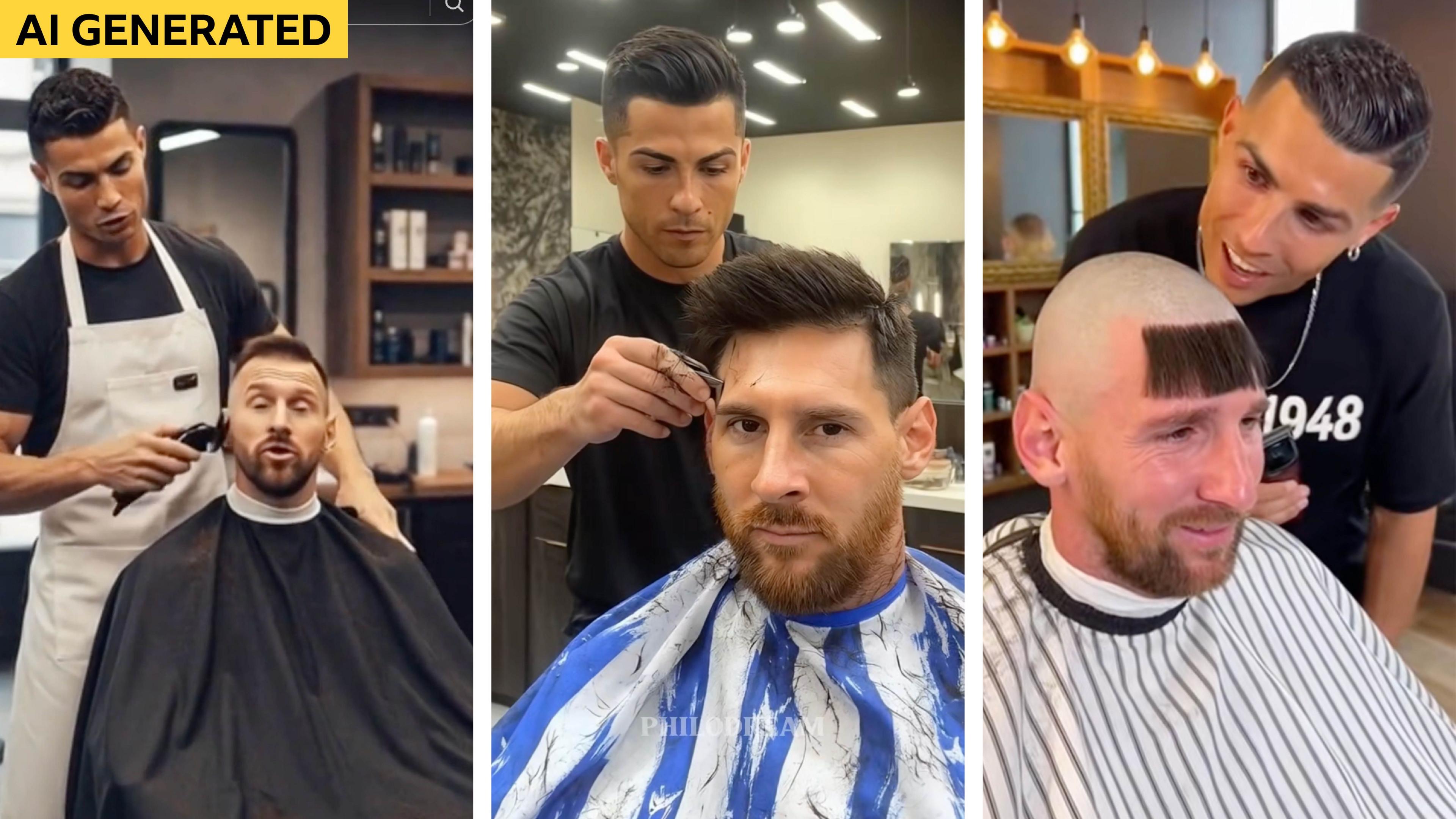 In these AI generated images, Cristiano Ronaldo is shown cutting fellow football great Lionel Messi's hair