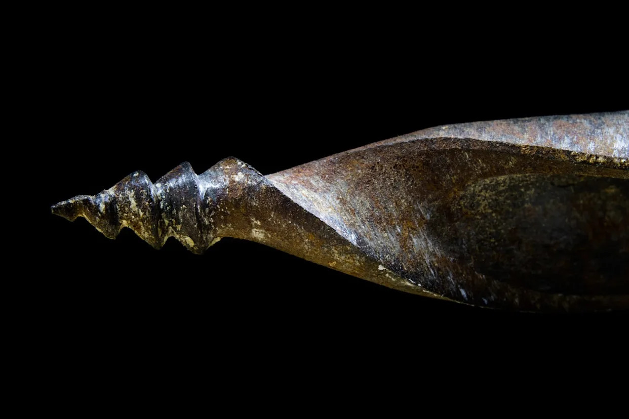 Weighing a slight 1.5 grams and measuring just over two inches long, the artifact was originally catalogued as “a little awl of copper, with some leather thong wound round it.” With such a mundane description, it sat unstudied for a century. That all changed when the research team took a liking to it and found that it featured wear consistent with drilling, highlighted by fine striations, rounded edges, and a slight curvature at the working tip. All the evidence pointed to rotary motion, not just simple puncturing.