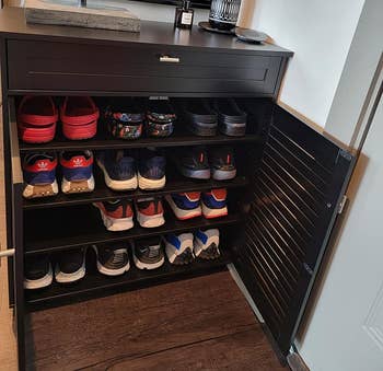 We hope you love our recommendations! While every product is independently chosen by our editors, BuzzFeed and our publishing partners may collect a share of sales or other compensation from the links on this page. You can read more about how our affiliate partnerships work in our Editorial Standards & Ethics Guide. You'll be shocked by how easy it is to disguise such monstrosities. Reviewers also use this as a media console to store games and electronics, too. Like I said...genius! Promising reviews: "I love this piece. Before, everyone in the family would come in and throw their shoes off and the area was a mess. Now everyone takes time to put their shoes in this and the area looks so nice. I’ve had many compliments on it." —Vicki Davis "I’ve had open shoe racks and the shoes were always falling out. Now all my shoes are contained and organized and hidden in a nice cabinet that’s low profile." —Kirsten Soquel Covogoods is a Utah-based, woman-founded small business that specializes in storage solutions crafted from up-cycled books. Promising review: "We absolutely love our CovoBox. It fits perfectly into our cabinet, and the cable modem/router, AppleTV, and external hard drive, and their various cables are now cleverly disguised as Harry Potter books 1–7. Great customer service, quick delivery, and a fabulous product. Two thumbs way, way up!" —John Grace Get it from Covogoods on Etsy for $29.40+ (originally $42; available in various customizations and sizes) OR from Amazon Handmade for $39+ (you'll choose customizations before adding to your cart). Promising review: "This is a very handy item. It fits perfectly in my laundry area. Easy to assemble and to use. A must if you like to be organized and you don't have a lot of cabinets to do so. I am very happy with this purchase!" —Amazon Customer Get it from Amazon for $22.99+ (available in five colors). Promising reviews: "This is the laundry basket we have on top of our dryer for whites. It is attractive, holds up nicely and if we have people over, they do not need to see our laundry displayed. Love it!" —Karen R. "Wow very thick and sturdy! I’m quite surprised. Love it for my nursery laundry basket for all the toys. The color is just as photo shows, complementary for all decor types. Good value for the money!" —Ichi Ban Get it from Amazon for $22.99+ (available in four sizes and five colors). It comes with a removable liner for the hamper that can be easily lifted out and wiped clean with a damp cloth. Promising review: "Straightforward assembly and a beautiful product, I was really happy. This looks perfect in a small bathroom and hides the unsightly laundry pile nicely. I keep makeup on top and extra toilet paper in middle, with plenty of space. The bamboo is nice and water resistant too, so deals well with humidity." —AJohns Get it from Amazon for $69.99 (available in two sizes/styles). One pint covers 100 square feet of brick surface. Note: The paint must be diluted at at least a 1:2 ratio with water to achieve full coverage! Promising review: "This is amazing!!!!! It looks like a different fireplace. I have been looking at a horrible grout repair that the previous owners did for 20 years. I did this in about two hours!!!!!! This product is fast, it's easy to use, easy to clean up, and inexpensive." —Denise Get a pint from Amazon for $21.37 (available in larger sizes). And grab a sleek cable sleeve (aka a wire cover) while you're at it! Promising review: "My cords look so much neater now. I also used a cord protector to bind up my cords. My surge protector fit nicely in the box. Very happy with my purchase." —Amazon Customer Get a two-pack from Amazon for $29.99 (available in four colors). No tools required! It comes with a two-way clamping design that works on both horizontal and vertical surfaces. It's compatible with desks that are up to 3.1 inches thick. BedShelfie is a POC-owned small business that focuses on space-saving solutions for the home. Promising review: "First impression of the CarryUp, the build of it is solid and felt heavy. The weight of it made me confident it will hold up well and last me a long time. Overall setup was a breeze. No tools needed at all. One sentence that sums up this product for me ... Simple and effective!!!!! If you have messy cords underneath your desk then don't think, just buy this product." —Eddie Sadiwa Get it from Amazon for $24.99 (available in dark grey or cream). OK, so painting your concrete patio may not sound like the easiest upgrade but if you're no stranger to painting and want a big impact, give it a try! Promising review: "Works great. Used it in the basement for a quick, simple, inexpensive upgrade to brighten up the floor a bit and give the cement a clean look. Did a fairly good job filling in some of the hairline cracks as well." —T Get a gallon from Amazon for $35 (available in silver gray or slate gray). There's a removable divider inside depending on how large your litter box is. You could keep the divider in and use the other side to store bags of cat litter, the scooper, etc.! Promising reviews: "I absolutely, LOVE this litter box cabinet. I used to keep it in my closet until noticing my clothes would have a chalky film on them. This is perfect!! Not only does it hide the box itself, but it helps contain any smells that are beginning to emanate from the box. I clean it out every other day and have never noticed any odors. I also took out the divider, because my box was a few inches too long. All changing supplies are kept inside, so it works out great! I HIGHLY recommend, this litter box cabinet!!" —Angie "This is the perfect way to conceal a litter box as well as the odors and dust that come with them. I have noticed a significant difference in the air quality in my home, it is as if I don't even have a litter box." —Annie Get it from Wayfair for $69.99+ (originally $82.99+; available in five colors). While restoring a finish isn't quit