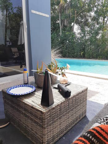 Promising review: "My favorite purchase for our deck. I LOVE this fire table. Good size, great value compared to what is out there. Packaged nicely. My husband put together alone in 30–45 minutes with no frustration and easy-to-follow directions. Puts out a decent amount of heat. Enough rocks to adequately cover. Just add your propane tank. I love that it has a lid as well. You will find sturdier fire tables, but not at this price. Excellent value." —Bellium