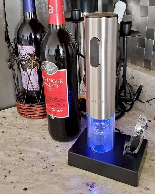 Promising review: "I read the reviews on here, and they seemed 50/50. I got this for my mom for Christmas, and it has opened MANY a bottle since then! Some reviews said it stopped working after a few bottles, but wine flows through this house like water, and this opener is still going strong! We leave it on its charger, and it looks nice with the blue light shining. No buyer's remorse here." —Sadie Goldberg
