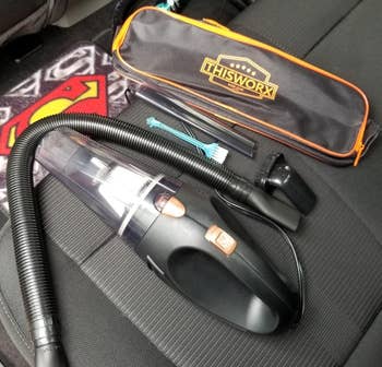Promising review: "Suction power: Literally better than my Shop-Vac and has all the accouterments that match its adorable size. THE POWER SUPPLY: only plugs into the car lighter. However, I tested it out just once so far, and I'm so excited that I am buying an adapter to see if I can use it in my studio. (The struggle is real in the war on dust on the behalf of resin). It comes with an extra filter, which just raises the bar for other vacuums for me. No buyer's remorse as of yet. I'll let ya know if that changes." —Jessi James
