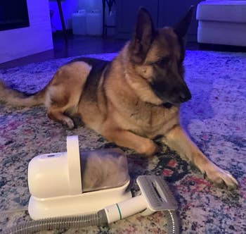 Promising review: "Honestly I was worried the price wouldn't be worth it, but I've been brushing my short-haired German shepherd every single day for over two weeks now with no letup in the amount of shedding, and it's taken about the equal amount of time to clean up her fur afterward. As it could be said, it's total fur domination in my house. I live in fur, and my clothes right out of the dryer have fur; I'm probably breathing fur at this point. I got this, and it's a total game changer. When I brushed her and pushed the button to vacuum the fur up, it just...disappeared. My jaw dropped, and any buyer's remorse I had waiting for it to be delivered faded instantly. Well worth the cost." —Chelsea