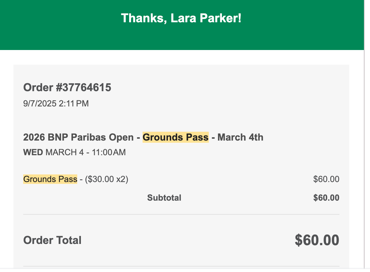 My reasoning for this is simple: The first week is when *every single player* is there. You're more apt to see way more players actually playing on the outer (read, free) courts, practicing on the practice courts, and you can see lots of fun doubles matchups. With a grounds pass at Indian Wells, you get access to Stadiums 3–9, plus all the merch and food options. With a grounds pass, however, you do not have access to Stadium 1 or Stadium 2, which will always have the big-name players in the big matches.