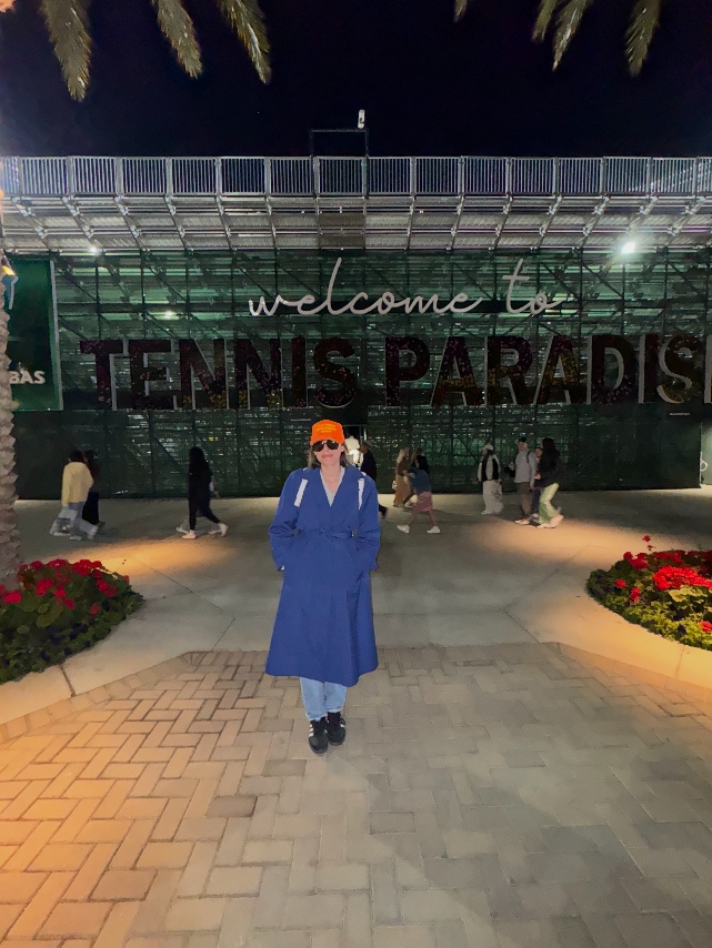 The pic above is me attending a night session match last year with a coat I thrifted in Palm Springs for $10 because I was low-key still too cold.
