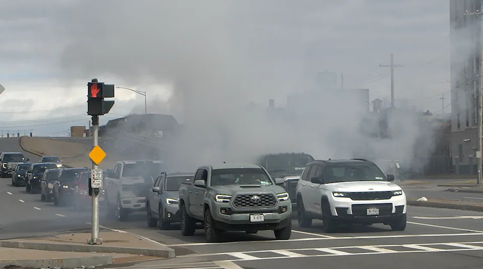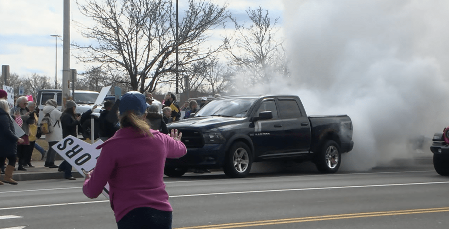 SYRACUSE, N.Y. (WSYR-TV) — Video shot by NewsChannel 9 during Sunday’s Women’s Day rally shows a black pickup truck revving its engine, smoking out demonstrators, as they rallied for women’s rights and democracy.