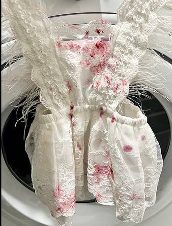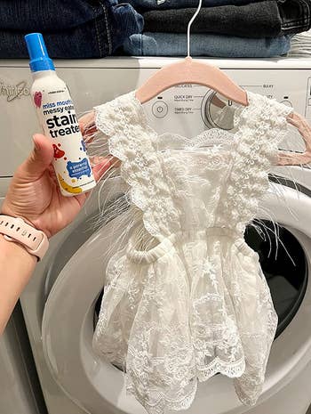 Promising review: "I have three young kids who like to get messy and usually spill things on themselves — this spray is a miracle worker! I haven’t found a stain that this stuff can’t get out! I’ve even had stains that weren’t new come out with this spray! Wish they had a bigger bottle option, but for now, this works. Not a huge fan of the smell, but it’s not a huge deal because it gets washed anyway." —Heather & Kresten