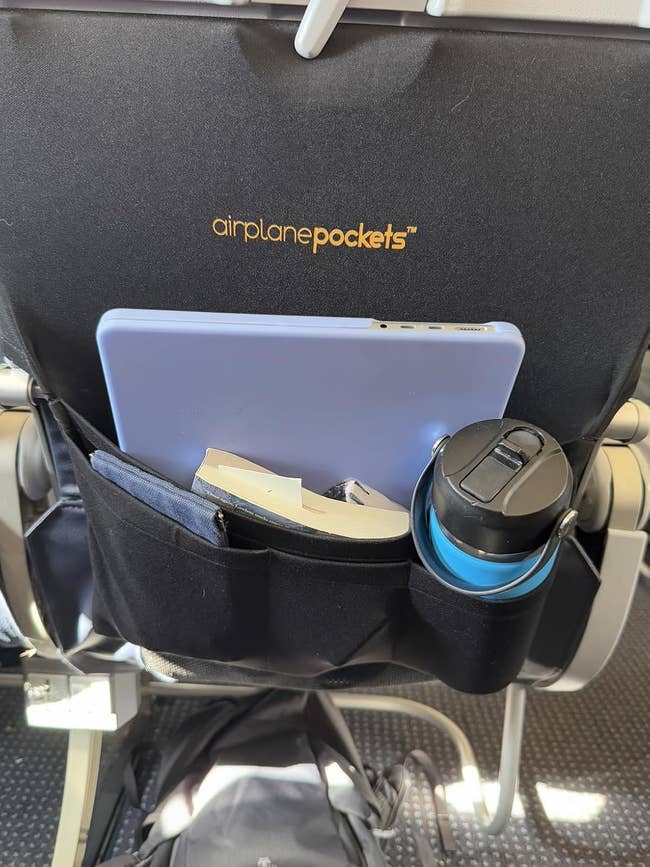 We hope you love our recommendations! While every product is independently chosen by our editors, BuzzFeed and our publishing partners may collect a share of sales or other compensation from the links on this page. You can read more about how our affiliate partnerships work in our Editorial Standards & Ethics Guide. This inflatable foot rest, phone mount, and drink caddy are bringing business-class vibes to your economy seat. This contraption provides 360-degree support thanks to a wraparound design and clips that connect it to your seat's headrest. Promising review: "Just took a 15-hour flight with this travel pillow, and this was the best travel pillow by far. I've used inflatable and memory foam neck pillows before; the major problem is that they don't secure your head and torso, so either your muscles have to hold up your body, or your head and torso will end up swinging around, and both are disruptive to sleep. With this travel pillow, my muscles can relax, and the padded eye mask will hold up my head and torso. One minor downside is that the pillow needs to be mounted on your seat's headrest; if someone bumps your seat, it can be disruptive, but this rarely happens. Its size and weight are also much less than memory foam neck pillows, and I don't have to bring an extra eye mask, so it is very travel-friendly." —Sky Get it from Amazon for $18.99+ (available in nine colors). Check out a TikTok of the nausea relief inhaler in action. PS: Allclair is a small biz! Promising review: "Took this on my first cruise. Anytime that I started to feel woozy, I’d reach for it. I’m sure the required act of deep breathing helped a lot — and breathing in the fragrance of the essential oil is very calming and effective. Worked for me! Wonderful!" —Willy&Lilly Get a pack of two from Amazon for $12.99 (also available in a pack of four). Promising review: "I ordered these earplugs for a long plane trip to another country. The earplugs did the job. They were extremely useful in drowning out most of the noise. I wanted to hear a little for announcements. These did the job. They gave me enough silence to get some sleep but I could hear enough sound to take them out during announcements. If you are looking for earplugs that allow you enough quiet to sleep, these are the earplugs to purchase. They are worth the purchase." —Khitkhat Get it from Amazon for $24.95 (available in four colors). Promising reviews: "Took my toddler on an international 17+ hour trip and I must say this was a great addition for him and me. He had a mini 1st class flight and occasionally I also was able to leverage it to put my feet up." —Nicole Ashley "Must have for long flights. My 1.5-year-old slept well on this inflatable airplane bed on an international flight. It fit nicely on the economy seat and was sturdy yet comfortable. My toddler slept for hours on it so I could get some rest too. I also like that it’s easy to set up and when packed up it is very compact so won’t take up much space in my carry on luggage." —Amy Get it from Amazon for $59.99 (available in two colors and two styles). Read more about compression socks and long flights at Cleveland Clinic. Promising review: "Nice socks! I purchased these for an overseas trip. I like the feel of them. The fabric is nice and soft, not too thick or thin. The socks are a good length for me and I like the color. The socks come with instructions of how to put on / take off. Also, directions on how to 'acclimate' to them by wearing them for shorter periods of time. They are very comfortable/supportive, stay in place while walking around and hug the right places (calves and foot arch). They also came with a little travel pouch, which is helpful for my upcoming travels. I definitely recommend these compression socks." —L. Alexander Get a set from Amazon for $19.99 (available in eight color combos and sizes S–XXL). Promising review: "I love this thing! I always hated putting things in the seat pocket on planes. It was easy for things to get lost in there or sometimes the pockets were pretty tight. This thing was amazing. I was able to get everything out of my bag that I might need during the flight and had easy access to it all. It was so much better than having to pull my bag out constantly to get stuff I needed. It also folds up nicely so it doesn’t take up much space in your bag." —Corey AND it folds down flat when not in use for easy packing. Just note you'll need to be sitting in the window seat and have full access to the window to use this. Promising reviews: "A friend recommended this to me as a vital travel companion, now that I've returned to frequent flying. I initially thought of it as a novelty, but now that I've used it, it's a necessity. It keeps the workspace clear for my laptop, but it also organizes all the little pieces that can become so annoying to keep up with — glasses, earphones, etc. It got my seat mate's immediate attention, as well as a few other folks nearby. I suspect they'll have one soon. Watch for one soon in a window near you!" —Timothy G. Wolfe "This is a very useful product and I take it with me on all my flights. Almost every time, the person next to me asks about it. It's especially useful on long-haul flights and international flights when you want that space the tray table takes up. It's light and thin, so takes up little room in my carry-on. Great accessory overall!" —Trung L. Perilogics is a small business creating hyper-functional tool holsters and bags for carrying your stuff on the go. Promising review: "I bought this nifty gadget about six months ago for a multi-leg, ultra-long-haul trip, and it more than held up the entire duration. I was able to finagle it to fit the tray tables on different planes, and like others, I find the height just nice when clamped onto a stowed tray table. It also works on my roller carry-on handle during layovers. However, I find myself using it a lot outside of travel too! Work-wi