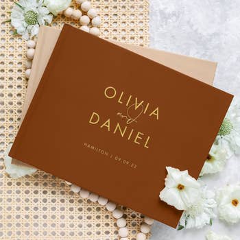 We hope you love our recommendations! While every product is independently chosen by our editors, BuzzFeed and our publishing partners may collect a share of sales or other compensation from the links on this page. You can read more about how our affiliate partnerships work in our Editorial Standards & Ethics Guide. You deserve a guest book that is as memorable as your special day. Let's be so for real — most wedding guest books get signed once, flipped through maaaybe twice, and then pretty much live out the rest of their days in a box next to your cute dress or on a shelf collecting dust. But what if I told you that there was a world of beautiful and unique guest book options that you'd love so much, you'd actually leave them out as a coffee table book or even play with them on game nights? If you love the idea of having sweet messages to look back on from your special day, and also want something that you'd be proud to leave out in your space, then buckle up. This list is full of fun, unique, and gorgeous wedding guest books that actually feel personal, meaningful, and worth keeping out for all who visit your house to see and admire. So, whether you’re looking for something personalized, non-traditional, or just more meaningful than a blank notebook, I've curated options on options on options you’ll treasure for years to come. This unique beauty is nowhere near your grandma’s boring guest book (no offense, grandma!). It’s like a storybook for your love story, with ornate fairytale design flourishes and typography that'll make this gem one of your most prized heirlooms. It includes 100 blank pages and is bound within the covers of your chosen customizable design. If you consider yourself a modern romantic, are always daydreaming about being a character on Bridgerton, or have considered yourself a Disney princess since birth, you'll love this display-worthy guest book. Get it from The Knot for $46.99 (available in six colors). And check out their other guest book options here. Say hello to the guest book that your people will not only love to use, but that you'll also get a huge kick out of looking back on long after your big day is over. Guests will get to use a rented retro rotary phone and leave an audio message that actually captures their voice, laughter, and personality. So now you’re not just scrolling signatures — you’re reliving moments in a way that paper could nevah provide. If you care about capturing how people felt that day and not just that they showed up, this is def the guest book to invest in. How it works: You just select which color option you'd like, and they'll ship out your phone to arrive before your event. And it has a simple one-button setup for the big day. Then, after everything is over, you return the phone with the included return label, and After The Tone will hand-edit your voicemails into forever keepsakes. You have a choice of getting a shareable digital audio file, a USB, and even a hand-cut vinyl record! Promising review: "SO happy we used After The Tone for our wedding! The guests had so much fun leaving voicemails. They processed the voicemails so quickly that we were able to listen to them on our honeymoon. They were hilarious, heartfelt, and so much fun. There was one voicemail that was cut off, but their team fixed it right away. They were responsive and professional." —Trina N. Get it in pink from After The Tone for $299 (available in 10 other colors). Ok, but can we talk about how stunning this embroidered beauty from Rifle Paper Co. will look not only at your wedding, but also on your coffee table for years afterwards?! It’s 144 half-lined and half-blank pages that are beautifully bound in between a bookcloth cover that's decked out in wildflowers and metallic gold accents, along with a delicate ribbon bookmark. With tons of room for notes, photos, and even little sketches, it'll give you the perfect wedding memory vault. Promising review: "This guest book is so lovely, the embroidery is even better in real life. My guests also liked it, and it is nice to be able to add pictures or other things to the blank pages." —Suvi H Get it from Rifle Paper Co. or Amazon for $52 (available in two options). And get the matching pen here or on Amazon. If you and your partner are huge gamers, then you'll love this fun guest book alternative — wooden stacking blocks! Guests can grab one of the 24 colorful pens (that come in 12 colors), jot down well wishes, jokes, or advice on the individual blocks, and then stack them to build a tower of love you’ll actually want to pull out on game night later on. It’s equal parts keepsake and party game, giving everyone a chance to contribute and have fun. Promising review: "The most unique 'guest book' for any event! I ordered this set, and it was a very interactive thing for guests to do. The markers are a nice paint style that really pops. We even loved the sign that came with it to tell people what exactly to do." —Ally Get it from Amazon for $31.99+ (available in 10 sign styles). If you're all about florals, personalization, and premium quality, this gorgeous guest book from Papier def checks all the boxes. The chic hardcover, arranged in the most dreamy arch shape, is customizable with the names of you and your boo, along with the wedding date. And the 96 luxuriously thick pages inside are just begging to be filled with heartfelt messages and warm well‑wishes. The classic yet modern design can fit many different wedding vibes, and the ribbon bookmark makes sure you never lose a favorite note. Promising review: “Exactly what I wanted and was looking for! The personalization of the notebook really makes me so happy. Worth every dollar” —Bruce Get it from Papier for $65. And check out the other options they have here. I don't know about y'all, but I was pretty blown away by how pricey some of these guest books can be. So, if you are thoughtfully counting your coins, but still want 