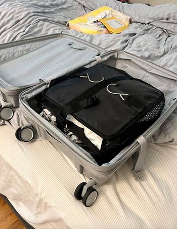 We hope you love our recommendations! While every product is independently chosen by our editors, BuzzFeed and our publishing partners may collect a share of sales or other compensation from the links on this page. You can read more about how our affiliate partnerships work in our Editorial Standards & Ethics Guide. Including face and body SPFs, because those are non-negotiable, folks! ☀️ Spring break is right around the corner, and if you've got a trip planned, *now* is the time to make sure you're prepared — not the night before you depart. 🙃 Ahead, we've tracked down the essentials reviewers swear by, from anti-bobblehead neck pillows and nausea relief inhalers to under-seat carry-on bags and the Mary Poppins of toiletry bags. Promising reviews: "I saw this on TikTok and purchased it for my trip! Got back home and used it in my own bathroom. I love it that much! Best Amazon purchase I’ve ever made!" —Amazon Customer "WILL NEVER TRAVEL WITHOUT IT. I am mad that I didn’t purchase this sooner. I was able to fit the toiletries for my entire family into this easily. The hook makes the items easily accessible, especially when switching hotels/houses and traveling frequently. I would purchase this again!" —Elisa D Get it from Amazon for $12.99+ (available in two sizes and 15 colors). This contraption provides 360-degree support thanks to a wraparound design and clips that connect it to your seat's headrest. Promising review: "Just took a 15-hour flight with this travel pillow, and this was the best travel pillow by far. I've used inflatable and memory foam neck pillows before; the major problem is that they don't secure your head and torso, so either your muscles have to hold up your body, or your head and torso will end up swinging around, and both are disruptive to sleep. With this travel pillow, my muscles can relax, and the padded eye mask will hold up my head and torso. One minor downside is that the pillow needs to be mounted on your seat's headrest; if someone bumps your seat, it can be disruptive, but this rarely happens. Its size and weight are also much less than memory foam neck pillows, and I don't have to bring an extra eye mask, so it is very travel-friendly." —Sky Get it from Amazon for $17.84+ (available in nine colors). Promising review: "I finally gave up and bought a charging station for several devices. I travel a lot, and taking turns charging my iPhone, AirPods, and Apple Watch was annoying, especially if the room had a limited number of outlets and I was not the only one who needed to charge all of them ASAP — plus, hauling all of the cords. Ugh. Hooray, I'm hustle-free now. It comes with one fold-up station, one cord, and one nob for three devices that charge simultaneously. It works with my iPhone 12 Pro Max from 2020, Apple Watch Series 6 from 2020, and AirPods Pro (2nd generation) from 2022 without issues. I am more than satisfied with the purchase." —Sneaky Pete Get it from Amazon for $26.57+ (available in six colors). PS: The genius Airplane Pocket is a small biz! Check out a TikTok of the Airplane Pockets tray table cover in action. Here's what BuzzFeeder Emma Lord has to say: "I used this on a round-trip from NYC to Tokyo, both with connecting flights in Canada, and cannot sing its praises enough. It fit all four of the different tray tables I used it on and was so ridiculously handy for keeping track of all my littler odds and ends like AirPods, the plane's headphones, earplugs, a sleep mask, a book, gum, a scrunchie, and little snacks. The hanging end of it easily tucked into the built-in sleeve of the seat in front of me for takeoff and when other passengers needed to scoot past me in my aisle seat. Usually, I feel like a hot mess and get frustrated rooting around in the grimy sleeve for my stuff, and this was such a refreshing solution! Several flight attendants even asked where I got it to buy one for themselves!" Promising review: "Every time I whip this thing out, someone leans across the aisle, asks what it is, and then makes a note to buy one when they get home. On a long-haul flight, it's simply a must for organizing your reading materials, headphones, sanitizing wipes, etc. My favorite use for this thing is when I've fallen deep asleep along the way, only to wake up in a fog and in a rush to deplane. Instead of having to hastily dig things out of the seat back pocket, I just slip the entire thing off of the tray table, pop it in my bag, and worry about sorting things out when I get to where I'm going — safe in the knowledge that I didn't leave anything behind. Love it!" —justinglen The formula is also fragrance- and oxybenzone-free. Note that the AAD recommends using at least SPF 30 and reapplying as needed for skin protection. You can read about sunscreen myths and facts from dermatologists for more information! Promising review: "I've gone through several sunscreens to wear with makeup, and this has been the best for me. I'm a simple girl. I apply this with vitamin C cream, let it absorb, then apply my It Cosmetics CC cream. It acts like a primer for me, and my CC glides nicely over it, no pilling, no heavy or cakey feeling. It's def lightweight but provides great protection." —Emily Haynes Check out a TikTok of the Airy Sunstick Smoothing Bar in action. Promising review: "NO WHITE CAST! I've been looking for a stick sunscreen and this was just exactly what was needed!! I'm a medium-toned Black woman and looking for something without a white cast is always a challenge. I have applied it on my bare skin and there isn't a white cast at all! It's a 'soft matte' finish, for sure, and looks like natural skin. Like you're not wearing anything at all." —Martina Get it from Amazon for $16.91 (also available in a pack of two). Bonus: This works with your existing suitcase, unlike versions of this that come pre-built into more expensive versions! Promising review: "I was able to pack seven outfits and have way more space in thi