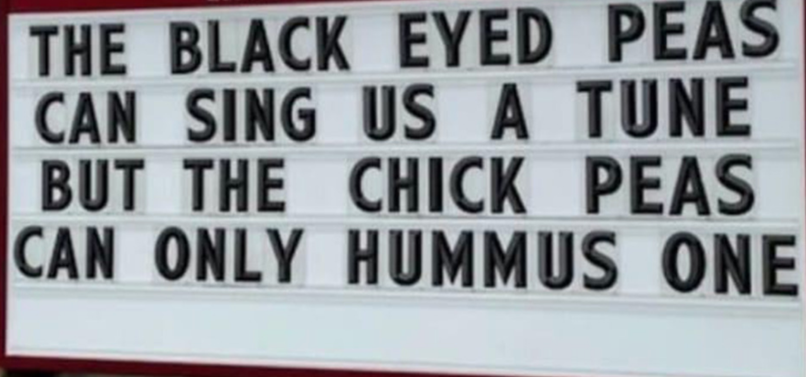 "The Black Eyed Peas can sing us a tune, but the chick peas can only hummus one."