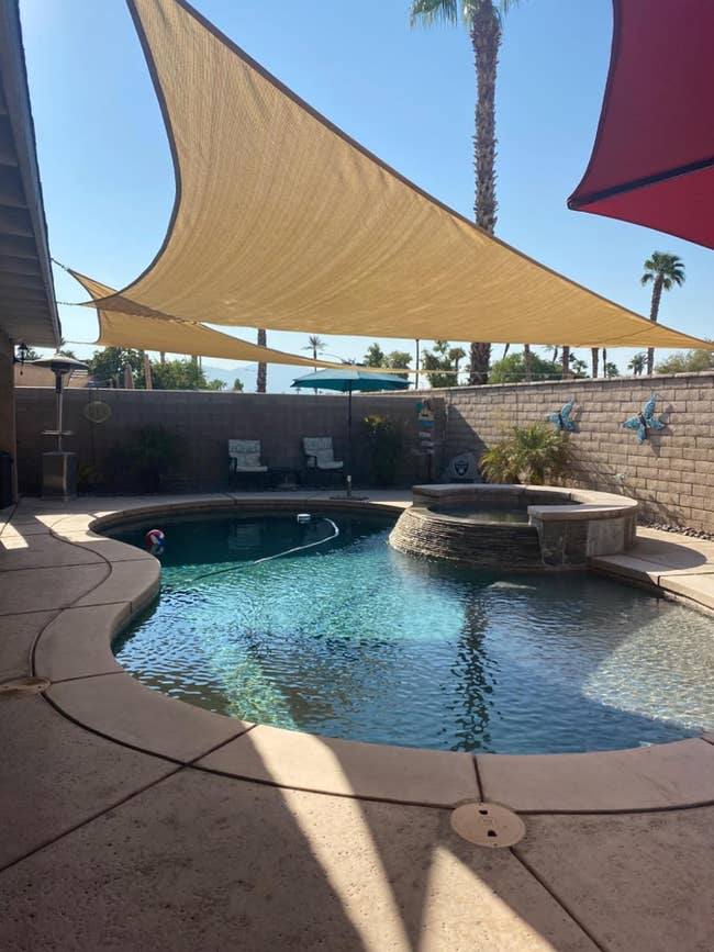 Promising review: "My pool is awesome when it gets into the 100s of degrees here in California. We decided to grab a 20x20x20 triangle, and holy cow, does it do a number on the backyard! Not only does it keep my pool better-shaded, but it also keeps the sun off of my back patio during the hottest part of the day." —The Tiki Lab