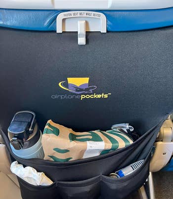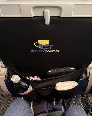Promising review: "I love this thing! I always hated putting things in the seat pocket on planes. It was easy for things to get lost in there, or sometimes the pockets were pretty tight. This thing was amazing. I was able to get everything out of my bag that I might need during the flight and had easy access to it all. It was so much better than having to pull my bag out constantly to get stuff I needed. It also folds up nicely, so it doesn’t take up much space in your bag." —Corey