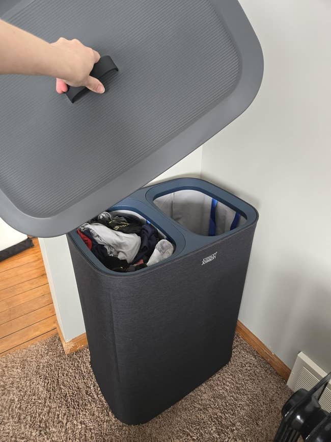 Promising review: "I love this hamper. It was easy to set up, and it’s spacious and sturdy. I can see it’s going to keep my laundry space well-organized. Removing the hamper to dump loads in the washer was easy. This product exceeds my expectations and does exactly what it’s intended to do! Highly recommend." —Susie