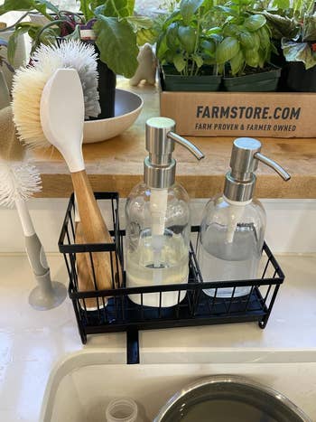 Promising review: "So far I really love this! It looks organized and nice on my countertop. It holds all my brushes/sponges easily and seems like really good quality. It didn't require any assembly other than just adjusting the compartments to my liking. The drain is really convenient, and I haven't noticed any leaking." —Emma