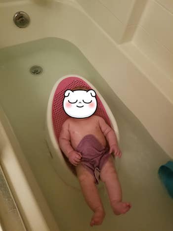 Promising review: "This is a must-have for a baby! This is one baby product that actually made my life easier! Saves space since it has a hook you can use to hang it up when it's not in use. Baby is able to comfortably lounge in the tub with this. We had a soft sided sink bath that just ended up not making sense and seemed so uncomfortable for our son. We ordered this and it was a total game changer!" —Lauren McEntyre