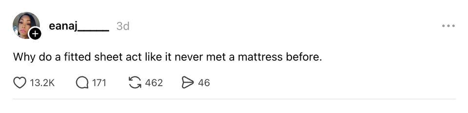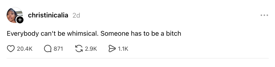 The ladies of the internet never fail to brighten our day with their brilliant and succinct wit. Each week, HuffPost Women rounds up their hilarious musings. Scroll through this week’s great tweets, threads and other posts from women, and then visit our “Funniest Tweets From Women” page for past roundups. Sign up for our Funniest Tweets of the Week newsletter here. If you're cremated after you die, you can be put into an hourglass and continue to participate in family game night. academic conferences are crazy because it’s like Let’s go to the most beautiful place in the world and then look at powerpoints for 12 straight hours I said no to a piece of cake today and have yet to see any health benefits me: please print this thing for meprinter: absolutely not I want to thank the Irish for inventing my favorite way to exit a function what having a cat is like: pic.twitter.com/WP2u8vSsCq guy on the middle seat of my redeye flight bravely asked me if i would move from my exit row window seat to a middle row seat 16 rows back so his friend could be with him. when i said no, he asked the aisle guy, who just laughed It’s a shame men aren’t allowed in grocery stores https://t.co/c2sP6YCimk Guy next to me at the bar last night watched me pull my beaded wallet out of my ruffley purse and instead of asking to buy me a drink said “Hi I noticed you like textures” crazy how my advice for anyone who’s super online is to “go outside and touch grass” but then I meet an outdoorsy hiker type and im like “oh man, this weirdo needs a scroll sesh stat” The kid next door (toddler age) is playing outside and just wiped out in his Fisher-Price car, and I just heard the babysitter say, "Oh no, your insurance premium is definitely going to go up!" And the kid who had only been mildly sniffling before made the most confused, but… Sometimes I wonder how the Vaseline company is holding up, because one container basically last you for 70 years also idk who controlling the weather but they got this bitch on shuffle By entering your email and clicking Sign Up, you're agreeing to let us send you customized marketing messages about us and our advertising partners. You are also agreeing to our Terms of Service and Privacy Policy.