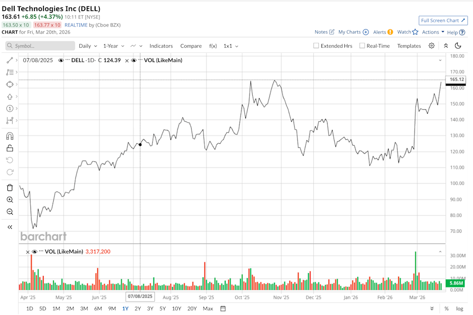 Super Micro Computer’s (SMCI) stock is collapsing, with shares plunging 27% in Thursday morning trading after federal prosecutors charged co-founder Yih-Shyan “Wally” Liaw, Ruei-Tsang “Steven” Chang, and Ting-Wei “Willy” Sun with operating a $2.5 billion smuggling scheme involving banned AI GPUs and servers to China. The U.S. indictment alleges the group violated export controls by routing high-performance hardware (believed to be Nvidia (NVDA) GPUs) through Southeast Asian shell companies. This bombshell lands atop SMCI’s already checkered past, including a 2020 SEC settlement for widespread accounting violations involving premature revenue recognition and understated expenses. The Strait of Hormuz Is Just a Distraction. The Real Story Is Bonds. What the Yield Curve Is Saying. Tesla Faces the ‘Couch Problem’: Modern Physics Warns the Optimus Robot Will Fail and Send TSLA Stock Falling Exxon vs. Chevron: Which Energy Giant Will Pay You for Generations as Oil Prices Surge? Markets move fast. Keep up by reading our FREE midday Barchart Brief newsletter for exclusive charts, analysis, and headlines. Rebuilding trust may prove nearly impossible. The big question, though, is whether this stunning implosion positions Dell Technologies (DELL) as the clearest winner in the exploding AI server market? Prosecutors say SMCI's scheme ran from 2024 into 2025. Liaw, then senior vice president of business development and still a board member, along with Chang (SMCI’s Taiwan general manager) and contractor Sun, allegedly instructed a Southeast Asian company to place massive orders for SMCI servers. Those units which contained restricted chips were repackaged, relabeled with dummy machines, and diverted to China. Tactics reportedly included hair dryers to erase serial numbers and staged inspections to fool authorities. At least $510 million worth of servers reached Chinese destinations, part of a broader $2.5 billion effort. SMCI itself is not charged, but it placed the individuals on leave and cut ties with the contractor. The scandal revives memories of SMCI’s prior accounting troubles, amplifying doubts about governance and long-term viability. While the smuggling allegations grab the headlines, the subtext points to billions in potential business shifting toward Dell. Once a niche player overshadowed by SMCI’s hypergrowth, Dell has rapidly become one of the AI server market’s biggest competitors. Leveraging its global supply chain, enterprise relationships, and diversified portfolio, Dell has captured share from hyperscalers, sovereign AI projects, and neoclouds such as CoreWeave (CRWV), Tesla (TSLA), and xAI. In its third fiscal quarter of 2026, Dell shipped $5.6 billion in AI-optimized servers and built an $18.4 billion backlog. Management now targets roughly $25 billion in AI server shipments for full-year fiscal 2026 translating into triple-digit growth, as well as guiding for $50 billion in fiscal 2027. This momentum reflects Dell’s ability to scale production while maintaining stronger margins than pure-play rivals. SMCI’s own results tell a story of explosive but fragile growth. For the second fiscal quarter of 2026, revenue hit $12.7 billion, up 123% year-over-year (YOY) with pre-scandal guidance for at least $40 billion for the full year with AI platforms driving the surge. Yet customers may now hesitate to associate with a company facing export-control charges and a history of accounting scrutiny. Reputation risk is real; enterprises and cloud providers avoid even the appearance of ties to sanctioned shipments. Many may very well pivot to Dell as the next major player. Its AI business has been compounding rapidly, with thousands of customers and a broad ecosystem that reduces single-point vulnerabilities. Prior to the implosion, analysts consistently rated Dell a "Moderate Buy," citing AI server momentum, a $13 billion-plus Q1 shipment runway, and overall revenue diversification beyond servers. Consensus mean price target hovers at $168.62, with optimism around sustainable growth and share gains. Early market reaction post-news shows Dell shares rising 5% while SMCI craters, suggesting investors view the scandal as a competitive tailwind. Fresh commentary is still emerging, but the pattern aligns with prior observations that Dell and peers stand to benefit from any SMCI disruption. It is deeply unfortunate for SMCI investors who have watched billions in market value evaporate through no fault of their own. At the same time, the scandal carves out a rare opening for Dell to accelerate market share gains, scale its AI infrastructure leadership, and solidify its position as the go-to provider in this high-growth sector. On the date of publication, Rich Duprey did not have (either directly or indirectly) positions in any of the securities mentioned in this article. All information and data in this article is solely for informational purposes. This article was originally published on Barchart.com