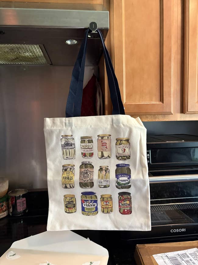 Promising review: "This is adorable and functional. It's a great-sized tote bag for personal use. I can fit the necessities and a water bottle. I love that there is a zipper inside for small items or keys. Love this pickle-lovers' bag. 💚" —OmgAshely