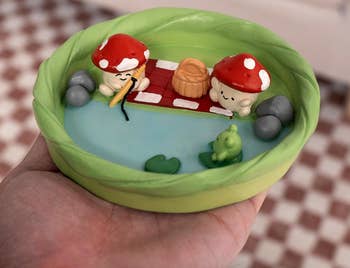 Promising review: "The dish is not only very cute, but also cleverly designed. The images of mushrooms and frogs make the entire dressing table look lively and interesting. The small size is just enough to hold my small accessories, which do not take up space and are very practical." —Chris Hales