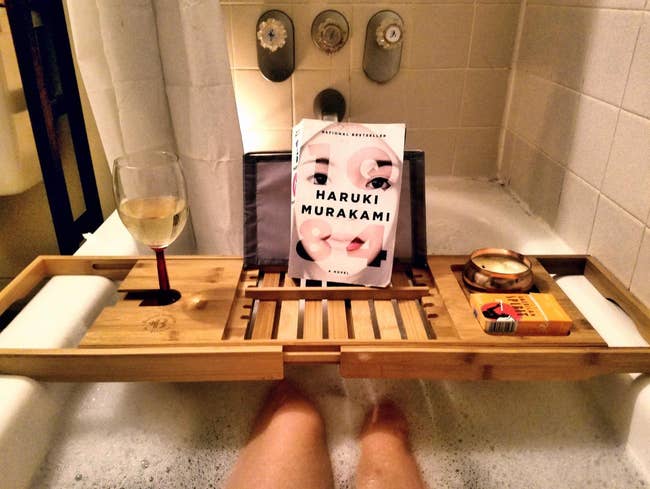 Promising review: "Surprisingly sturdy and well made. Assembly and construction is excellent, and the accessories are quite clever. On balance, the tray is impressive and well worth its cost. A thoughtful gift, especially for anyone who likes to relax in the tub, but not without their accessories and a glass of wine." —Barry