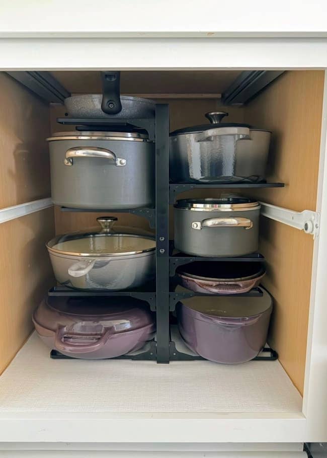 We hope you love our recommendations! While every product is independently chosen by our editors, BuzzFeed and our publishing partners may collect a share of sales or other compensation from the links on this page. You can read more about how our affiliate partnerships work in our Editorial Standards & Ethics Guide. Use every last inch of storage space you’ve got without turning your cabinets and drawers into an overstuffed abyss. Promising review: "The LAMU turntable is a game changer in the world of kitchen organization! This ingenious product has become a 5-star essential in my home. The standout feature is the effortless way it brings order to my refrigerator. No more reaching or rummaging to find items — just a quick spin, and everything is at my fingertips. The 360-degree rotation is a game-changer, making it a breeze to access even items tucked away in the back. The build quality is superb; the turntable feels sturdy and durable. It accommodates various sizes of jars, condiments, and containers with ease, adding a level of versatility that enhances its overall utility. Installation is a no-brainer, and the sleek design doesn't take up unnecessary space. It's like having a mini-revolution in my fridge, making daily tasks more efficient and enjoyable. Whether you're a culinary enthusiast or just looking to streamline your kitchen storage, the LAMU turntable is a must-have. It's functional, durable, and brings a touch of organization magic to your refrigerator. It gets five stars without a doubt!" —Secret Angel Get it from Amazon for $19.99+ (available in two sizes and packs of two). Promising review: "I had this in my cart so long because I felt silly buying an organizer for kitchen pots. I’ve tried many times, but that just didn’t work. Holy cow! This organizer saved me stress. I no longer dread opening the kitchen cabinet and pulling out every pan, pot, and lid that my roommates threw in, looking for the one I wanted. When I put everything else back, I didn’t want to cook anymore. Now, I can get exactly the pan or pot (with the matching lid!) right away, and roommates who only use the pot can leave the lid on the shelf so it stays clean. This organizer has seriously saved me!" —J Get it from Amazon for $23.99+ (available in nine sizes and finishes). Promising review: "Great quality! These help me make better use of a very deep, but narrow cupboard. I was wasting half the space because it was nearly impossible to reach into. This organizer was very easy to install and took about 10 minutes. I chose to install it with the screws rather than the adhesive pads. I also chose not to use the side “rails” for supporting pan handles since I’m only using them for lids. The ball bearings glide very quietly and smoothly. My only regret is not ordering it sooner." —Amazon Customer Get it from Amazon for $24.99+ (available in three colors, two formats, and two pack sizes) Promising review: "Love it! Looks great and minimalist. The fact that you can just stick it on the wall is a great plus!" —Laure Larue Get it from JustaWoodStoryShop on Etsy for $32.70+ (originally $36.33+; available in seven sizes and four types of wood). Promising review: "I use this to organize my purses. Before, I would just throw them on top of each other on a shelf in my closet, which made it hard to find what I wanted and made it look so messy. I can customize the width of the space between the dividers to fit any size purse. The dividers make it easy to organize purses of different sizes, styles, and colors. Removing them from my closet and putting them back is so easy." —Tess Get it from Amazon for $48+ (available in two colors). Promising review: "What a fantastic idea! These storage boxes keep my linens covered, sorted, and organized. No more lopsided, falling piles of sheets." —Amazon Customer Get it from Amazon for $18.97+ (available in four pack sizes and seven colors; click "Redeem" on the product page to save 10%). Promising review: "This is an awesome set!! They are quality, heavy-duty stainless steel with a matte finish. Both the cups and spoons have every measure you need to accomplish your task. Ever wish you had that 3/4 teaspoon (or cup) measure? These have it! Now, I can get rid of the odd-ball measuring cup and spoon 'sets' that were never really enough for one reason or another. These don't take up much space, and I love the magnetized spoons and leveler! No more having to wash all the spoons on a ring because you used one. And the convenience of having the round and oval shapes is wonderful! If you're looking for a measuring set with everything, this is the one!" —Amazon Customer Get it from Amazon for $32.99+ (available in five colors). Promising review: "If you can call a hanger beautiful, these are beautiful. The wood is finished, the hardware is sturdy, and they're easy to put together. I could hardly believe how heavy the package was when I picked it up. I've tried hangers for multiple garments before; either it was impossible to get one garment off, or the weight of the garments made the whole thing sag. Not here. I loaded five pairs of wool pants on a hanger without a problem. The way it can swing up to hang from the clothing rod makes it easy to access each item. I will be buying more of these." —Karen McCallum Get it from Amazon for $18.98+ (available in three pack sizes and four colors). Promising review: "This charging station has been a game-changer! It’s perfect for charging my iPhone 16, iPhone 15, and Apple Watch at once. The MagSafe feature makes it super easy to just snap my phone on, and the setup is sleek and organized. No more cable mess, and it looks great on my desk! If you want an efficient, clutter-free solution for multiple devices, I highly recommend this. Worth every penny!" —Karbunty Get it from Amazon for $28.99+ (available in two colors). Promising review: "I never knew how many beautiful pieces I had until I saw them laid out in these 