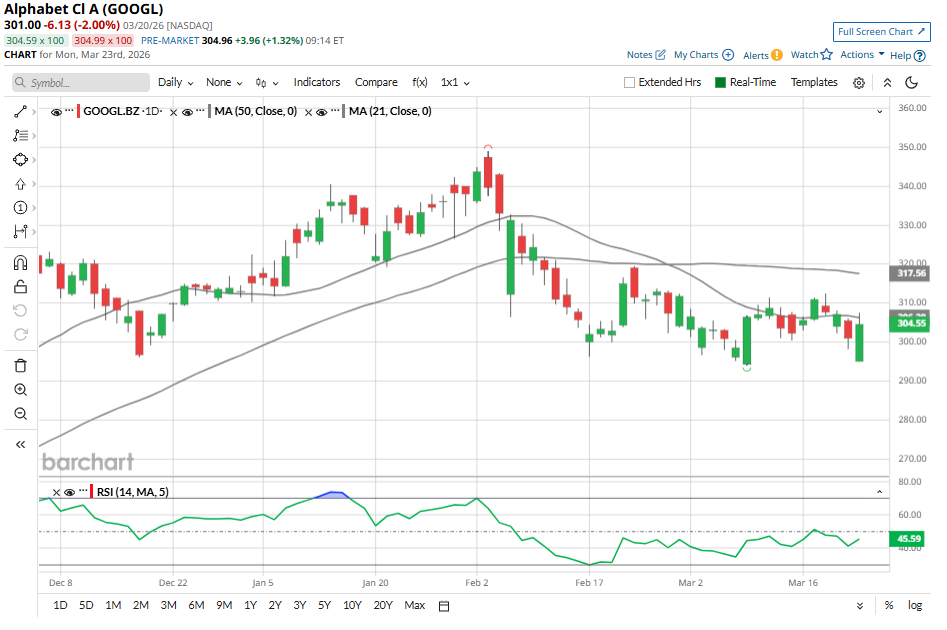 Alphabet (GOOGL) stock has cooled off a bit after a strong rally over the past year. Notably, the launch of Gemini 3 and the significant revenue opportunity from its internal Tensor Processing Units (TPUs) gave its share price a significant boost. However, geopolitical tensions in the Middle East have contributed to market caution, while concerns about the company’s rising capital expenditures have stalled GOOGL’s upward momentum. Alphabet is investing aggressively as it expands its artificial intelligence (AI) capabilities and underlying infrastructure to meet growing demand. Management has indicated that capital expenditures are projected to rise significantly, reaching between $175 billion and $185 billion in 2026. This marks a substantial increase from the $91.4 billion deployed in 2025, with spending expected to accelerate throughout the year. Such elevated investment levels are likely to place pressure on margins and free cash flow in the near term. Micron Technology Hikes Its Dividend 30% Due to Surging FCF - MU Is Worth 34% More - What's the Best Play? As Trump Admin Warns on Airport Closures, Should You Sell Delta Airlines Stock? Iran War, Oil Volatility and Other Key Things to Watch This Week Stop Missing Market Moves: Get the FREE Barchart Brief – your midday dose of stock movers, trending sectors, and actionable trade ideas, delivered right to your inbox. Sign Up Now! Despite these concerns, most analysts remain optimistic about Alphabet’s long-term outlook. Moreover, at least one analyst is projecting GOOGL stock to hit $420 (the Street's highest price target) over the next 12 months. Based on recent pricing, this implies a potential upside of approximately 40%. Alphabet’s rising capital expenditures have weighed on investor sentiment in the near term, but the company’s accelerating investment in AI and infrastructure is translating into solid financial performance. In 2025, Alphabet generated $403 billion in annual revenue for the first time, reflecting early contributions from its AI initiatives. Momentum remained strong in the fourth quarter, with consolidated revenue reaching $113.8 billion, up 18% year-over-year (YOY). This performance reflects broad-based strength across its businesses. Its largest segment of Google Services, which includes Search, YouTube, and subscription offerings, saw revenue rise 14% to $95.9 billion. The standout performer remained Search, where revenue climbed 17% to $63.1 billion. This growth shows the durability of Alphabet’s core advertising engine, as AI reshapes the ways in which users interact with information. Enhanced user engagement and improved monetization, driven by AI-powered features, are strengthening Search’s dominance. Also, YouTube advertising contributed positively, with revenue increasing 9% to $11.4 billion. While more modest compared to Search, this growth reflects steady demand in performance-driven advertising, indicating that advertisers continue to see value across Alphabet’s ecosystem. Google Cloud continued to deliver strong performance, with quarterly revenue rising 48% to $17.7 billion. Growth was driven by strong enterprise demand for AI-focused solutions, particularly within Google Cloud Platform (GCP). The platform is gaining share through higher customer win rates, larger long-term commitments, and increased spending from existing clients. Enterprise AI products are now generating billions in quarterly revenue, highlighting their growing significance within Alphabet’s overall revenue mix. AI is proving to be a powerful multiplier within the cloud segment. Approximately 75% of Google Cloud customers now utilize its integrated AI stack, spanning custom silicon, foundational models, and enterprise-grade tools. These customers tend to adopt significantly more products than non-AI users, deepening client relationships and expanding revenue opportunities. At the same time, enterprises are rapidly scaling AI workloads, driving demand for advanced computing infrastructure such as TPUs and GPUs. Alphabet’s proprietary models, including Gemini 3, are gaining adoption across industries, positioning the company as a vertically integrated AI provider. Perhaps the clearest validation of this strategy is Google Cloud’s backlog, which reached $240 billion by the end of the fourth quarter. More than doubling YOY and rising 55% sequentially, this backlog represents committed, multi-year revenue, largely tied to enterprise AI contracts. Alphabet’s elevated capital expenditures are less a risk and more a strategic necessity. The company is effectively building the infrastructure layer of the AI economy while simultaneously monetizing it through its existing platforms. Alphabet’s strong fundamentals, led by robust growth in Search, accelerating cloud adoption, and expanding monetization of AI, provide a solid base for sustained revenue expansion. The rapidly growing cloud backlog and deepening enterprise AI integration further strengthen its outlook. However, investors should note that aggressive capital expenditures, projected to nearly double in 2026, are likely to compress margins and weigh on free cash flow, potentially limiting multiple expansion in the short term. Additionally, macro and geopolitical uncertainties could dampen investor sentiment. In sum, a near 40% upside is achievable if Alphabet continues to consistently convert its heavy AI investments into sustained revenue growth and focuses on improving margins across its core segments. On the date of publication, Amit Singh did not have (either directly or indirectly) positions in any of the securities mentioned in this article. All information and data in this article is solely for informational purposes. This article was originally published on Barchart.com